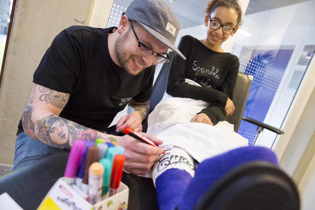 Op donderdag 26 januari 2017 werd de ziekenhuisgang omgetoverd tot “Tattooshop de Gipskamer”. Een waanzinnig idee van creatieve studio Part of Something, die er ook meteen de juiste partners bij haalde. De beste tattoo-artists van Nederland stonden klaar: Trobbies, Hans & Lizer van Stay Classy Tattoo, Joost & Erik van Bont & Blauw Tattoo. En wij, edding? Wij leverden alle stiften. Uiteraard. Daar hoefden we geen seconde over na te denken.